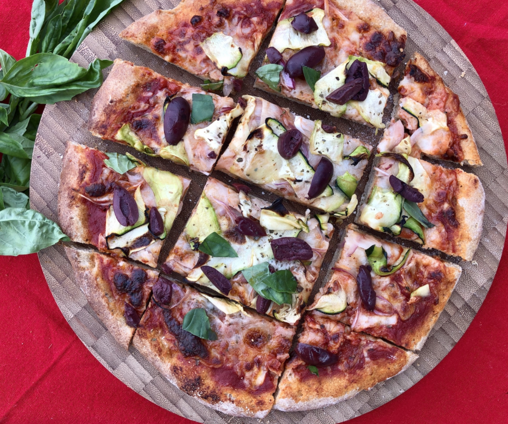 Summer Pizza with Zucchini, Red Onion, and Kalamata Olives